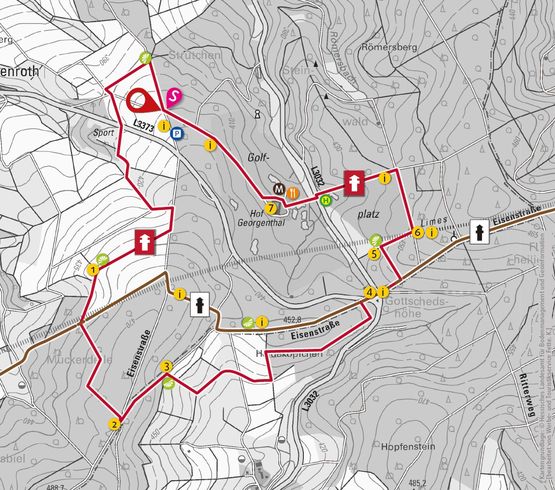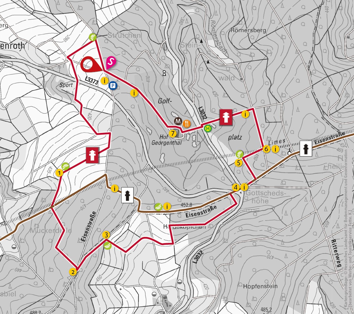 Das Hofgut Georgenthal war früher ein großer Bauernhof. Es ist nicht überliefert, dass das Hofgut auch eine Villa Rustica war, aber die Lage in Sichtweise des Limes und die großen landwirtschaftlichen Flächen drum herum, die heute ein Golfplatz sind, entsprechen der damaligen Struktur einer Villa Rustica.